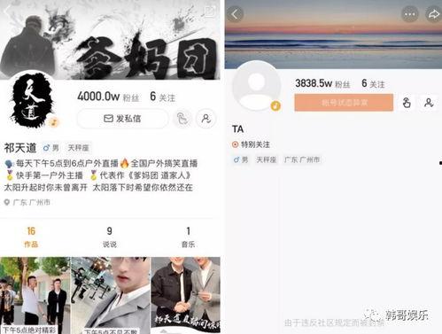 说起五哥和祁天道,那可真是网络直播界的两大风云人物。五哥,原名王五,是快手平台上的一位知名主播,以其幽默风趣的直播风格和独特的个人魅力吸引了大量粉丝。而祁天道,原名祁天,同样是快手平台上的一位人气主播,以其搞笑的表演和接地气的性格赢得了观众的喜爱。